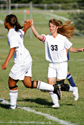 Soccer Players High Fiving